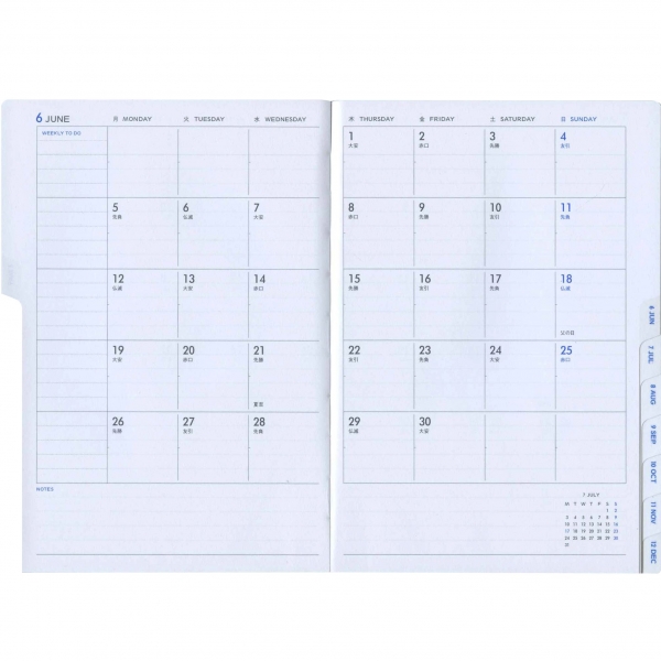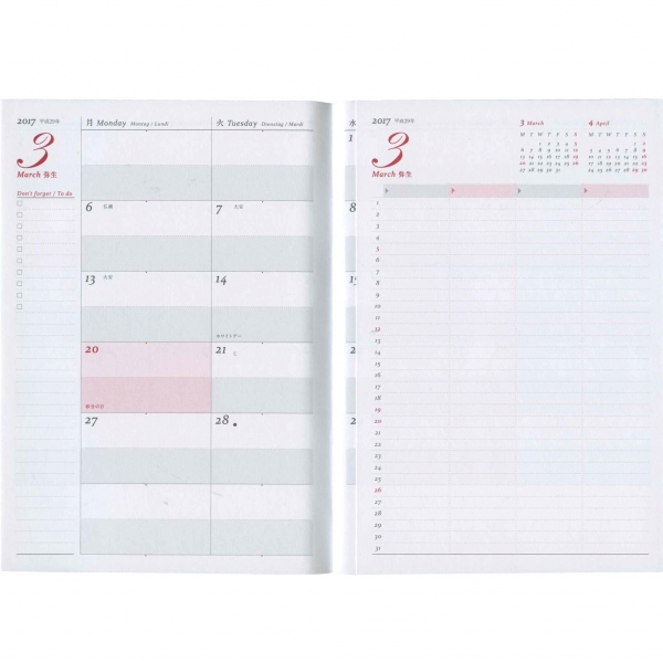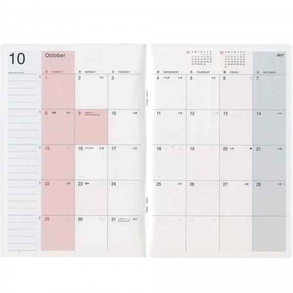 片面1週間バーチカル+片面メモのバーチカル・レフト。