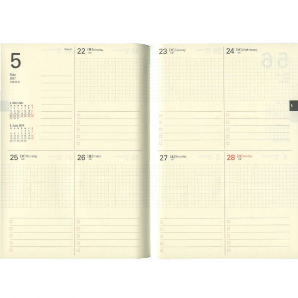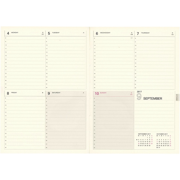 中のフォーマットは書き込む際に自由度の高い週間ブロックタイプ。