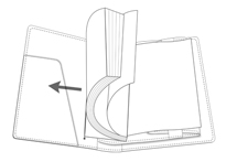 (1)開いて右側は、A6サイズ縦型メモパッドを差し込むことができます。 |