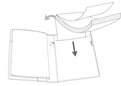 (2)左側の表紙(または裏表紙)をスリットに差し込みます | ![]() |