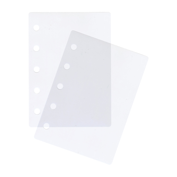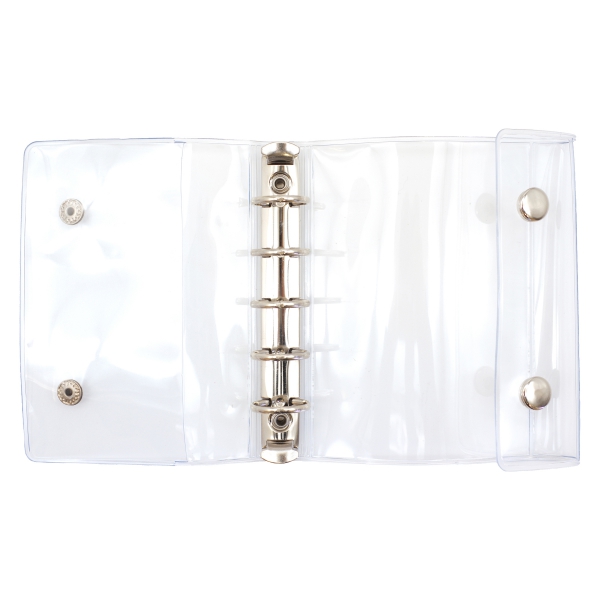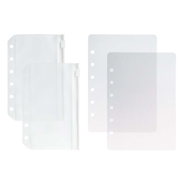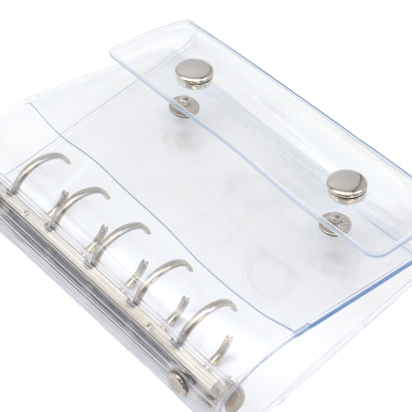 透明なカバーのミニ5サイズのバインダーと、シールやマスキングテープを貼ることができる便利な透明シート、トレーディングカードやチェキを入れることができる透明ポケットです。
