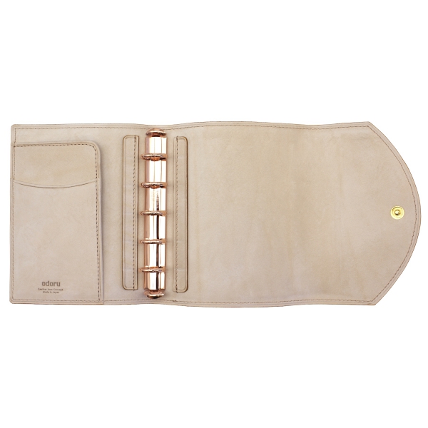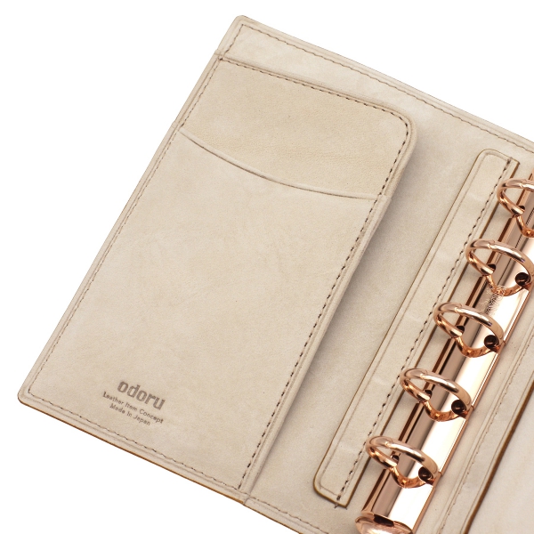 イタリア製ワックスレザーを使用したシステム手帳。使い込むとワックスが摩擦で取れ、革本来の風合いを楽しめます。職人の手縫いステッチやクラウゼ製のリングなど、美しいデザインと高い機能性を兼ね備えています。