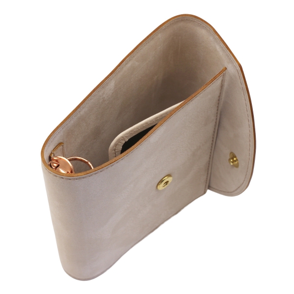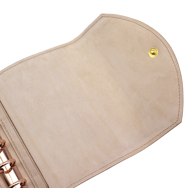 ラ・ぺルラ・アッズーラ社のソフトコンドールレザーを使用したシステム手帳です。ヌバック素材でとても柔らかくふわふわとした肌触り。染料で染め上げているため経年変化も愉しめます。