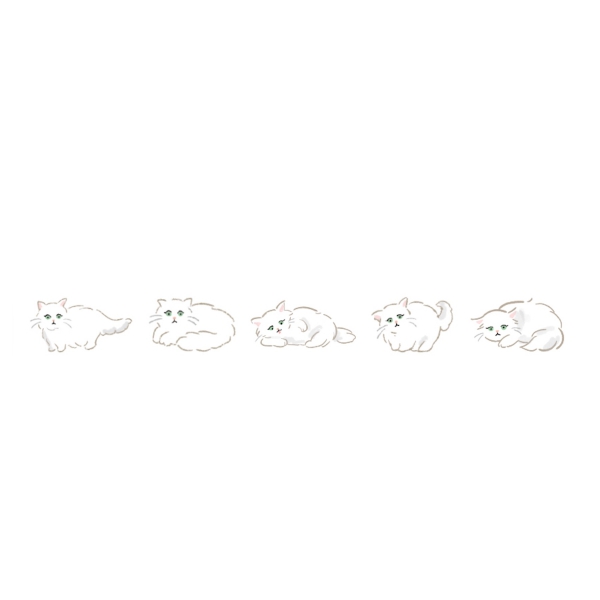 パッケージは猫耳&肉球をイメージしたオリジナルデザイン。お散歩したり、伸びをしたり、おなかを出して寝転んだりと、かわいいネコちゃんのさまざまな表情・ポーズを楽しめる多彩なテープデザインです。