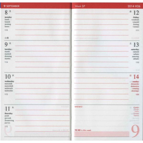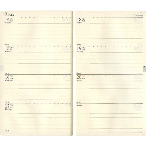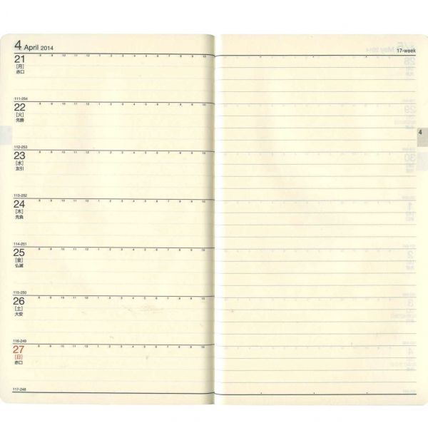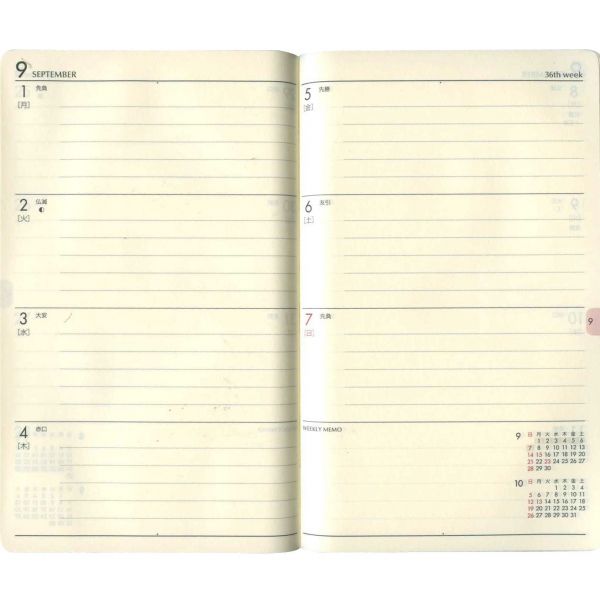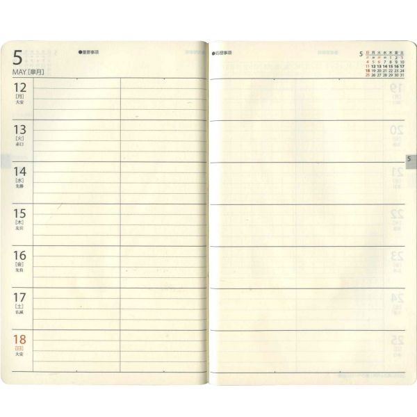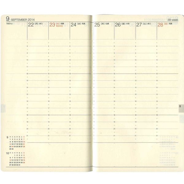 ![]() :週間ホリゾンタル見開き式 |