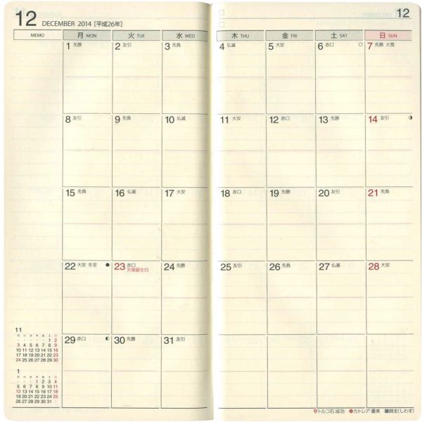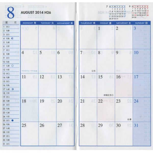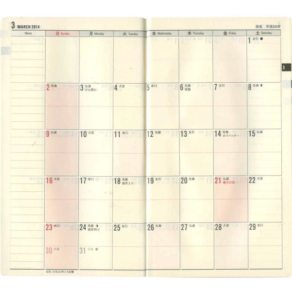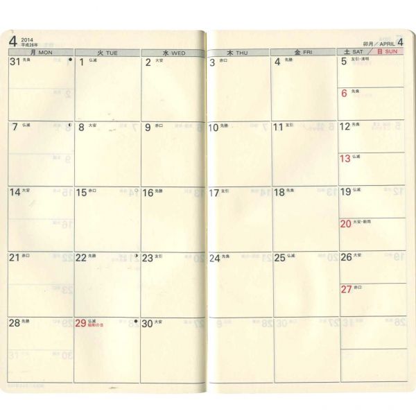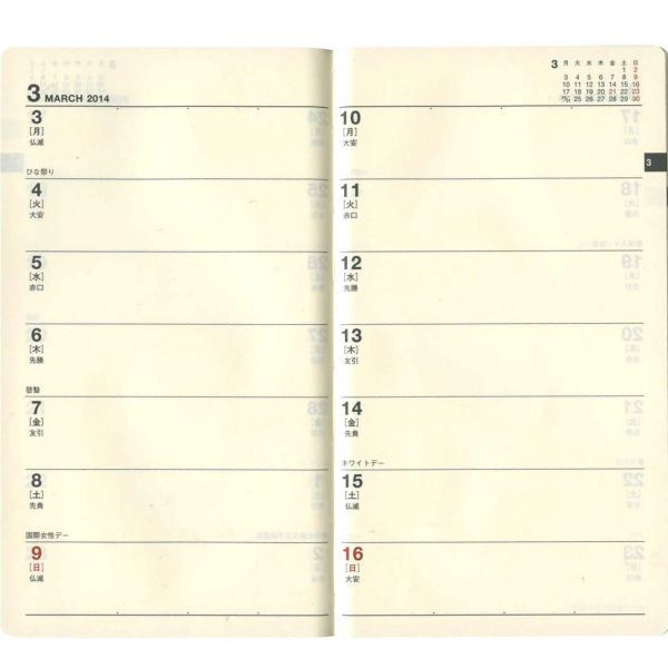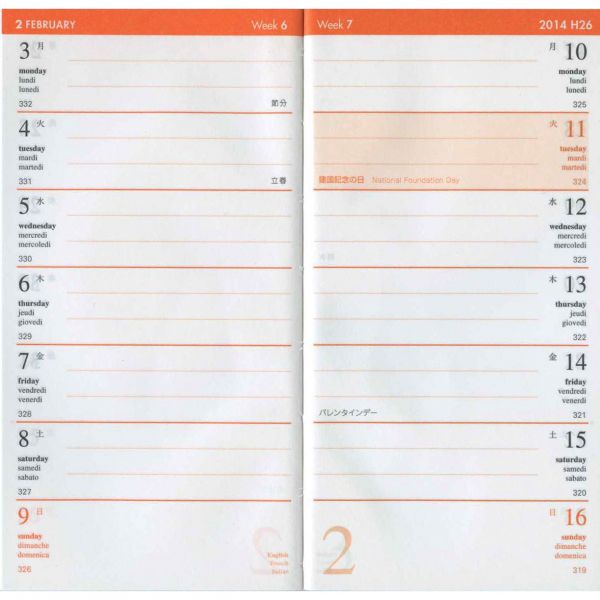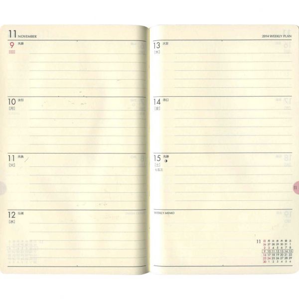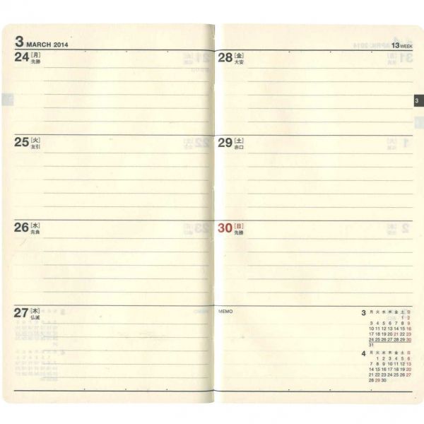 ![]() :2週間ホリゾンタル見開き式 |
