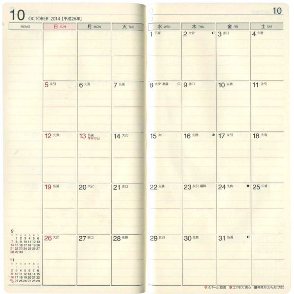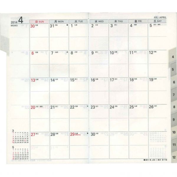 ![]() :月間ブロック見開き式 |