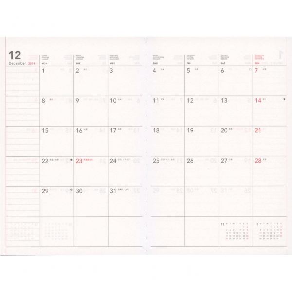 ![]() 【エトランジェ】A6変型 月間ブロック 見開き<2013年12月から2015年1月対応> ZOOM |