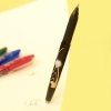 (1)フリクションも当然ながらインク以外はふつうのボールペンですので、筆圧で紙が凹みます。 | ![]() |