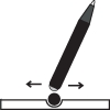 (2)ペンのおしりについているゴムでこすります。このゴムは温度を上げるための擦過材で、インクを削り取るためのものではありません。 | ![]() |