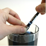 (6)水にペン先を浸し水を吸い上げたり、はき出したりを繰り返し洗浄します |