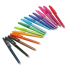 パイロット「フリクション(商品名のスペルはFrixion)」は、その名の通り摩擦熱によりインクカラーが透明化し、書いた筆跡を消すことができるという画期的な特性を持った筆記具です。