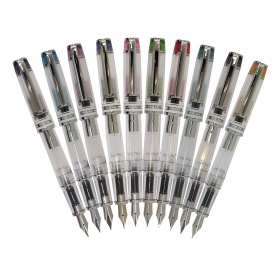 人気の「プレラ (PRERA)」に限定版の透明軸が登場!頭冠と尾栓に、色彩雫(パイロットさんから発売されている万年筆用インク・別売り)の色味を意識したカラーを採用。コンバータを使用してインクを吸引すれば、鮮やかなインクがスケルトンボディに美しく映えます。コンバータ(CON50)付き。