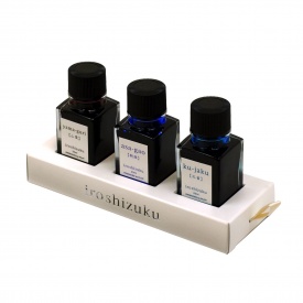 万年筆用インク色彩雫 の限定版3色セット(各20ml)遂に入荷しました!日本の美しい情景を表現した万年筆インキの最高峰、色彩雫を手軽に揃えるチャンスです。この機会をお見逃しなく!※画像の万年筆は付属しておりませんのでご注意下さい。