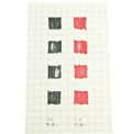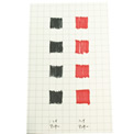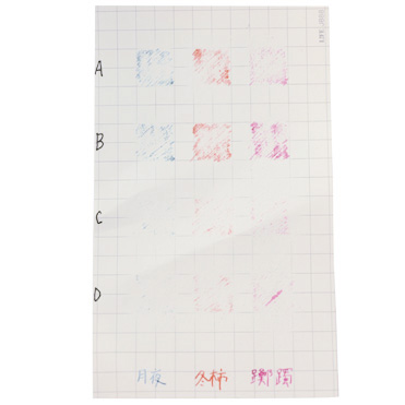 各種ボールペンで約1cm四方のマスを塗りつぶし、その書いた筆跡を消していきます。