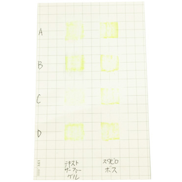 A、ハイパレイザー 油性に比べると粘度が低く、紙に染み込んでしまっているのか、ややてこずってしまいました。また、「エナージェル」「サラサ」は比較的消えやすいのですが、「ボールサイン」は、なかなか消えませんでした。 |