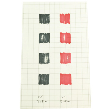 特徴:インクの粘度が高いので、インクの滲みが少なく裏移りしないなどの利点があります。もちろん、油性なので、乾いた後、水に濡れても消えません。