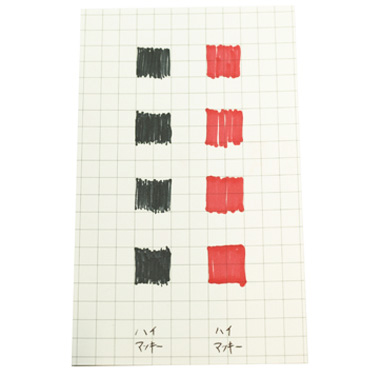 「油性マーカー」の定番、ハイマッキーの赤。裏まで染み込むほど、ガッツリ書けます。