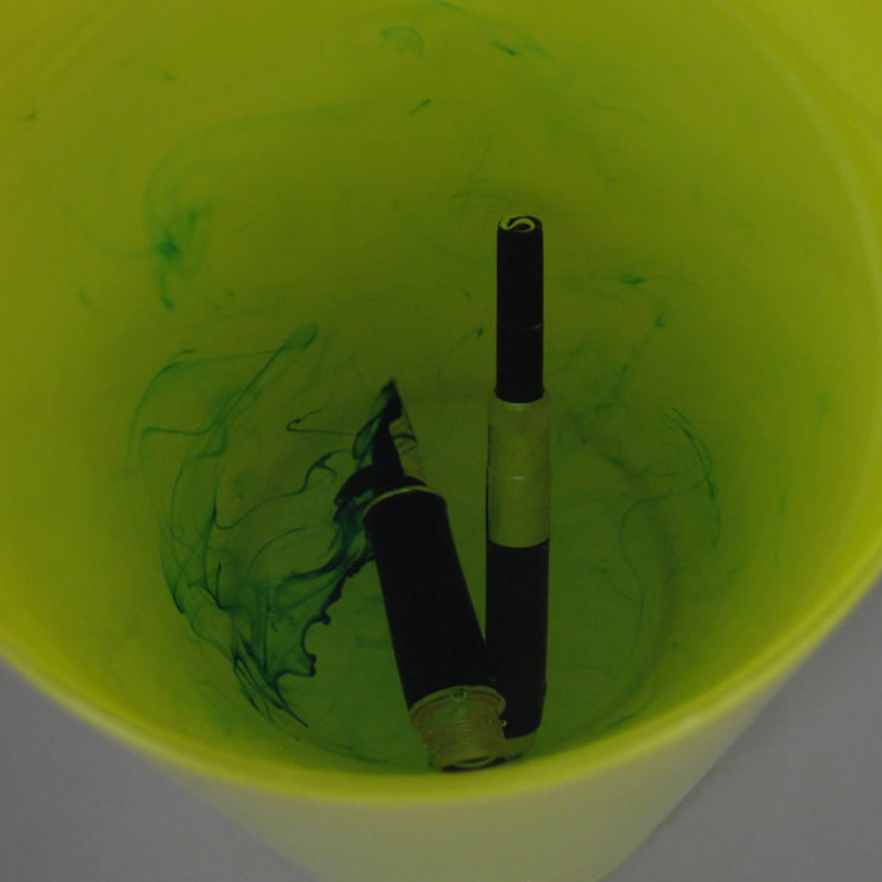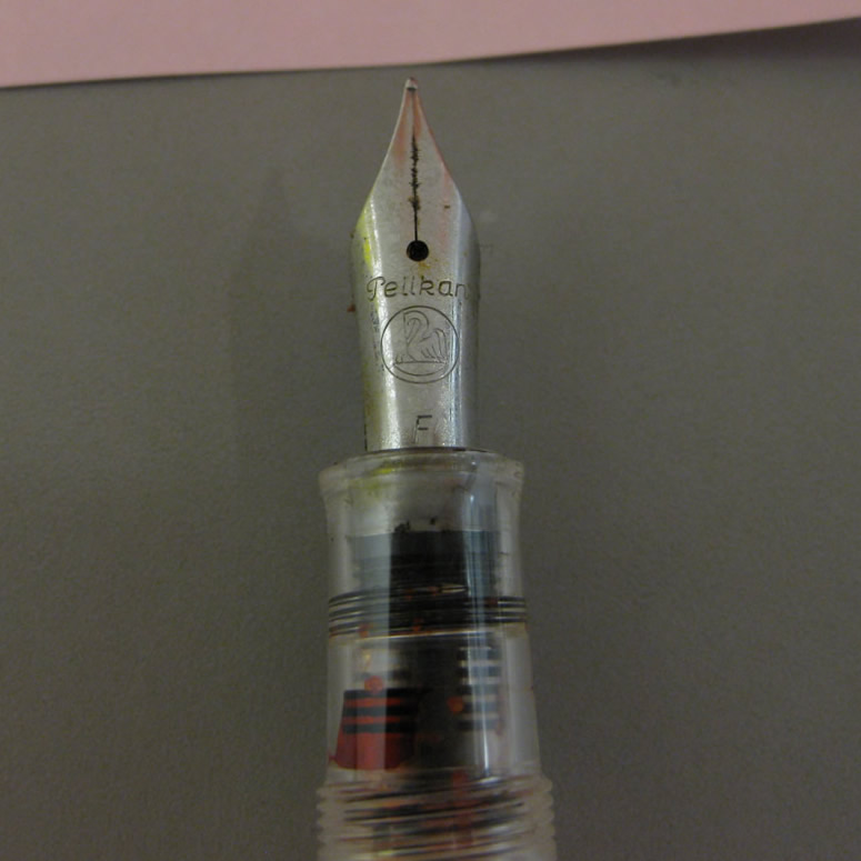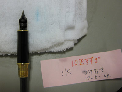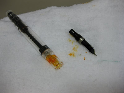 洗浄具合をわかりやすくするために、インクが入ったままかぴかぴに乾燥して書けなくなった状態の