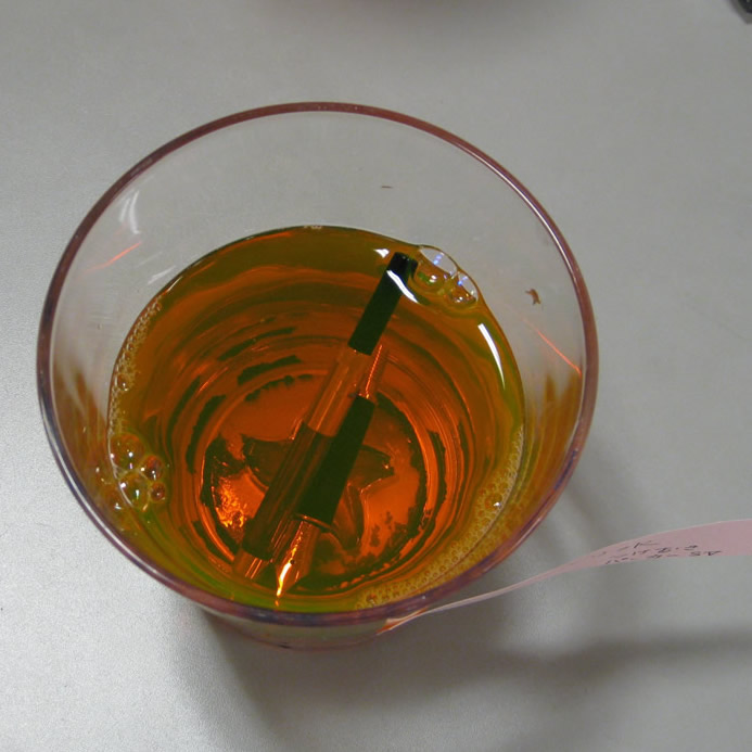 (4)クリーニング液に一晩つけ、水でクリーニング液をすすぐ