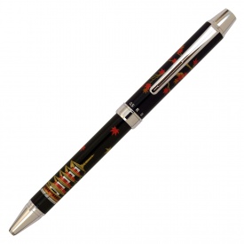 https://www.kdm.bz/c1_600000003959.html蒔絵の技術を活かし、日本の美しい風物を描いた多機能筆記具です。和柄のすばらしいデザインが目を引きます。「油性ボールペン【黒】【赤】」「0.5mmシャープペン」の機能を搭載しています。