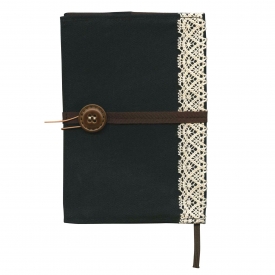 https://www.kdm.bz/c1_300000001385.html背の部分にレースがあしらわれたブックカバーです。フロントのボタンは開閉部を留める紐を巻き付けられるようになっています。素材には丈夫で発色の美しい国産帆布生地を使用。使い込む程に風合いが増していきます。
