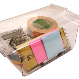 https://www.kdm.bz/c1_300000001478.htmlPVCシートを立体的に成形した透明のコンテナーです。絶妙なカラーリングと曲線的な形状が、美しく幻想的な雰囲気を与えています。郵便物やカタログといった、机上に溜まりやすい書類などの一時保管場所に最適。