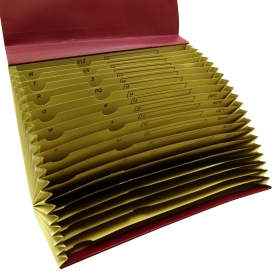アメリカのNo.1紙製品メーカー「ミード」社の紙製ドキュメントファイルです。見出しがついた21のポケットで書類を分類しながら収納することができます。勝手な開閉を防ぐゴムバンド付きで、持ち運びにも便利。