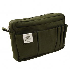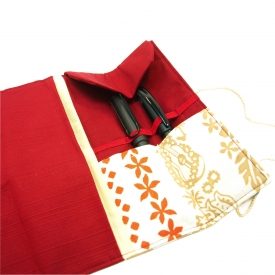 半分はサイドからペンを入れ込むポケット、半分は縦型ポケットにペンをさすことができるロール式ペンケース。