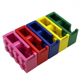 まるでレゴブロックのような、遊び心のあるデザインが目を引くテープカッターです。プラスチックならではのチープでポップな雰囲気がデスクを楽しく彩ってくれます。土台裏面に固定用のテープがついています。
