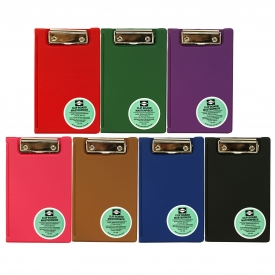 領収証などを挟むのに適した、ベーシックな小型2つ折りクリップボードです。立ったままでの筆記に適した丈夫な芯材を、軟質PVCでコーティング。水濡れに強く、安定感のあるしっかりとした作りになっています。