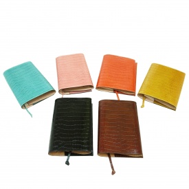 鮮やかな発色の牛本革にクロコ柄の型押しが施された文庫本カバーです。表面に艶、光沢がありながら、革本来のしっとり柔らかな手触りを備えているので、KDMでも人気のアイテムです。
