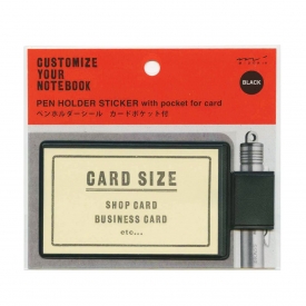 ノートや手帳に取り付けることができるシールタイプのペンホルダー。接着部分にポケットが付いており、貼り付けたノートの表紙に見出しをつけることができます。