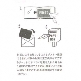 思い出の写真にメッセージを添えて送ることができるレターアルバム。L判写真用のフォトポケットが8つと、アルバムの最初にメッセージ記入欄が1ページ付いています。