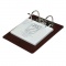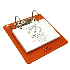 緩やかな傾斜が付いた、使い勝手の良いメモスタンド。本体のボード部分は、紙に顔料を浸して含ませ革調のエンボスに施した、堅牢な素材でできています。40ミリのリングに、A6サイズ100枚の無地メモが付属。