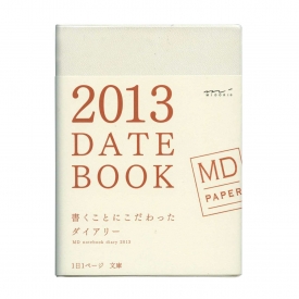 1950年創業ミドリさんの2013年版手帳です。文字をなめらかに書くことができ、にじみや裏抜けがしにくいデザインフィルオリジナル用紙「MD用紙」を使用したダイアリーは、書くことにこだわりをもつ人々に、毎年多くの支持を得ています。