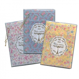 ラッピンググッズ・グリーティングカード等で有名なZ&Kさん。かわいらしいチャーム付き手帳は毎年人気があります。