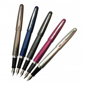 優美な曲線が描くシンプルなフォルムが特徴の万年筆です。ペン先はスチール(特殊合金)でありながら、非常になめらかな書き味。万年筆初心者にオススメです。