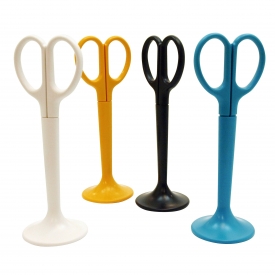 立てた状態で収納することができるケース付きハサミです。プラスチックよりも重量感のある発色の良いマットな質感の素材を使用しています。