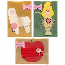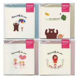 かわいいイラストが入った2つ折り色紙。封筒1枚付き。定形外郵便(切手140円)で郵送できます。