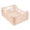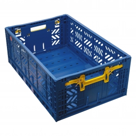 工具なしで簡単に組み立て・折りたたみができる樹脂製のコンテナ(収納ボックス)です。積み重ね可能なスタッキングタイプ。