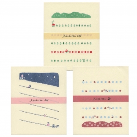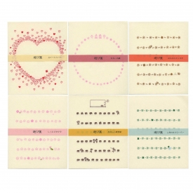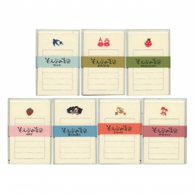 優しい色目の和紙にスタンプ調の絵柄が入った、可愛いそえぶみ箋です。メモ感覚の手軽さが人気の秘密。