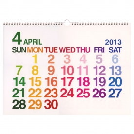 シンプルで見やすいエトランジェさんの2013年4月始まりカレンダーです。実は日本で数字だけでデザインされたカレンダーを一番最初に提案したのはエトランジェさんだそうです。