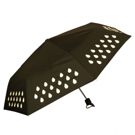 雨に濡れるとしずくがレインボーカラーに色づくよう特殊プリントが施された折りたたみ傘です。乾くと元の白色に戻ります。これがあれば、憂鬱な雨の日も晴れやかな気分に!