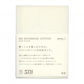 発売5周年を記念して抄造された、「書くことを愉しむための」特別仕様MDノート。中紙にコットンを20%配合することで、温もりのある優しい肌触り、やわらかく上品な書き味を実現しました。