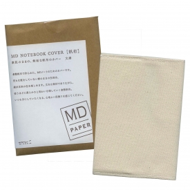 倉敷帆布で作られた、MDノートのためのカバー。しっかりとした厚手の帆布生地は、耐久性と通気性に優れ、使い込むほどに味わいを増していきます。純粋さや素朴さを感じさせる、無地の生成色が美しいアイテムです。