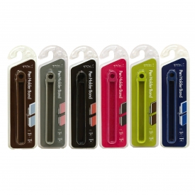 柔軟性のあるシリコンゴム製の手帳用バンド。A6からB6サイズのダイアリーに適しています。まるで、両手で抱え込むように筆記具を挟むペンホルダーには、直径7-12mm程度の筆記具を差し込むことができます。