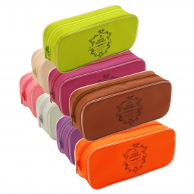 発色が美しいビニール製のペンケース。筆記具30本から40本程度収納可能。表面にあしらわれたアンティーク調のデザインがエレガントな雰囲気です。他ではない中間色を取り揃えたカラーバリエーションも魅力。