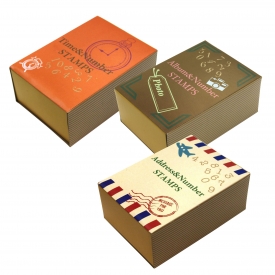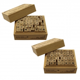木製のケースに入ったかわいい文字スタンプセットです。Have fun with stamps!