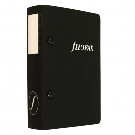 使い終わったシステム手帳リフィルをファイリングしておくための保存用バインダー。リフィルの穴に2本の金属バーを通して綴じます。綴じ具はワンタッチで開閉が可能なスナップボタン式。